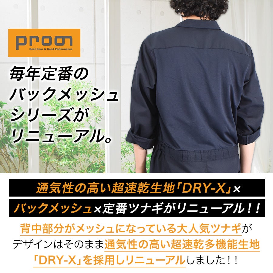 他の画像を見る プロノ 超速乾バックメッシュ長袖ツナギ PR-2619 DRY-X ドライ メンズ 夏用 作業服 作業着 涼しい 通気 オーバーオール オールインワン Prono ¥ 6,039 税込 カートに入れる お気に入りに登録する