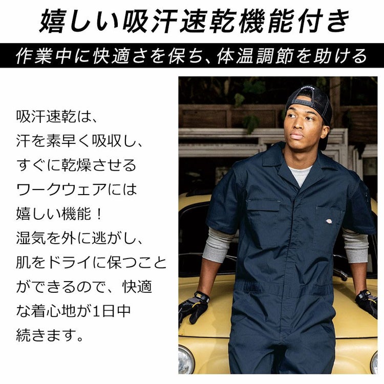 ディッキーズ ライトT/Cストレッチ半袖ツナギ D-6702 Dickies 夏用 作業着 作業服 オールインワン アメカジ おしゃれ メカニック 整備 車 バイク 農業 アウトドア DIY