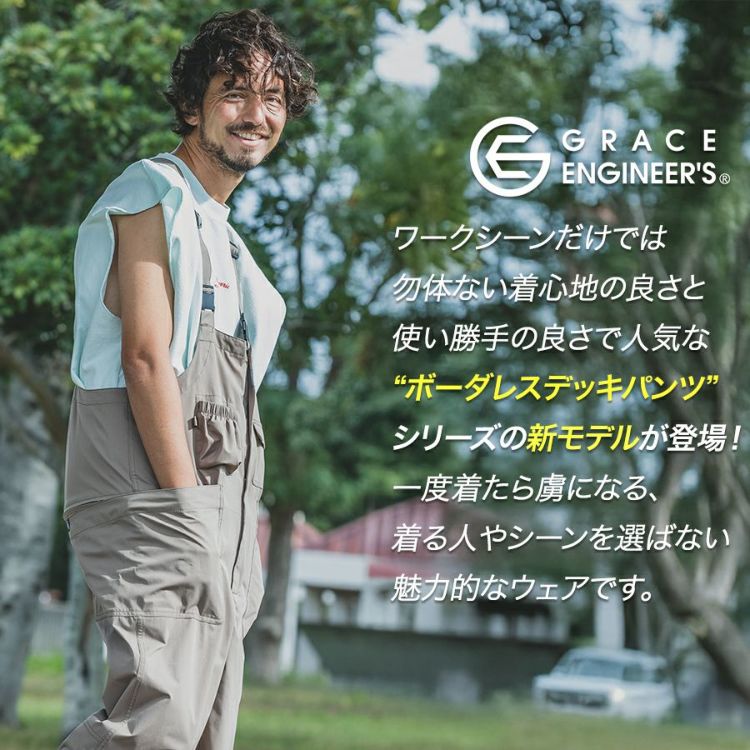 グレイスエンジニアーズ ボーダレスデッキパンツ・エアー GE-810 サロペット メンズ レディース ユニセックス ヒップオープン ストレッチ オーバーオール GRACE ENGINEER'S