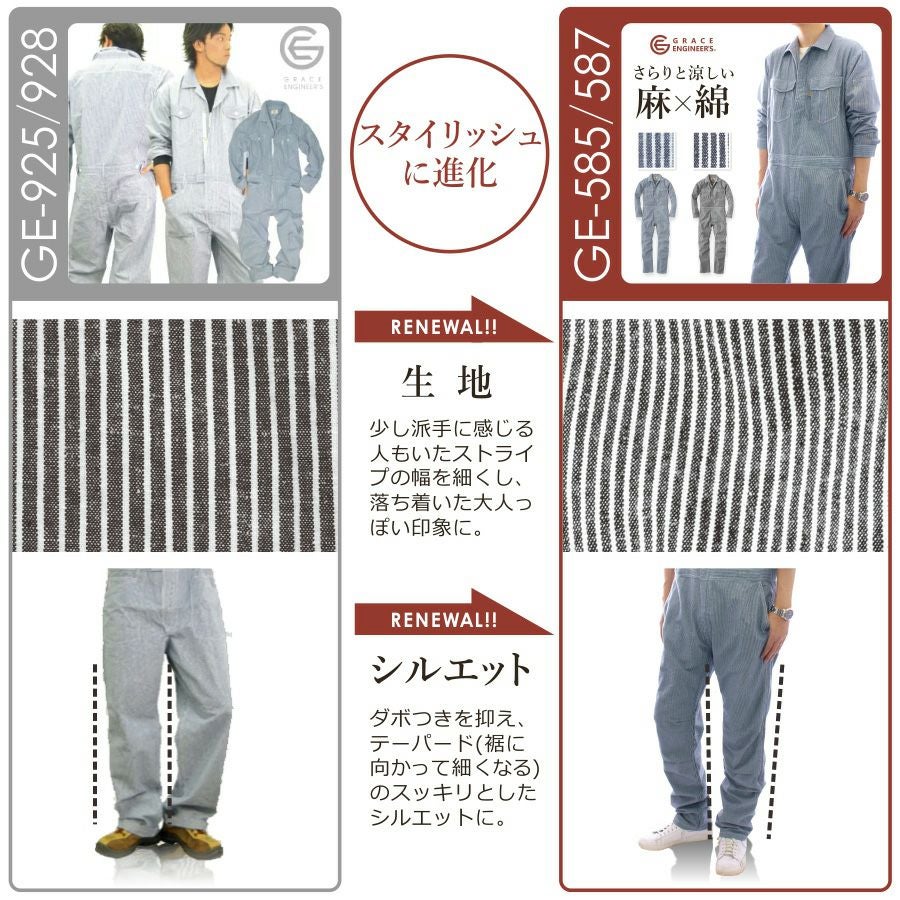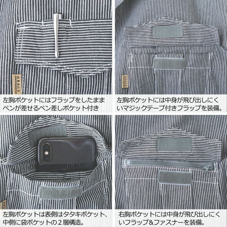 他の画像を見る 【4L/5L】「GRACE ENGINEER'S(グレイスエンジニアーズ)」綿麻ストライプ半袖ツナギ/GE-585/半袖 リネン ガーデニング メカニック 整備 車 農家さん 農作業 つなぎ おしゃれ デニム ヒッコリー キャンプ アウトドア ¥ 6,589 税込 在庫切れ 人気のオシャレな麻混ヒッコリーツナギ!! カートに入れる お気に入りに登録する
