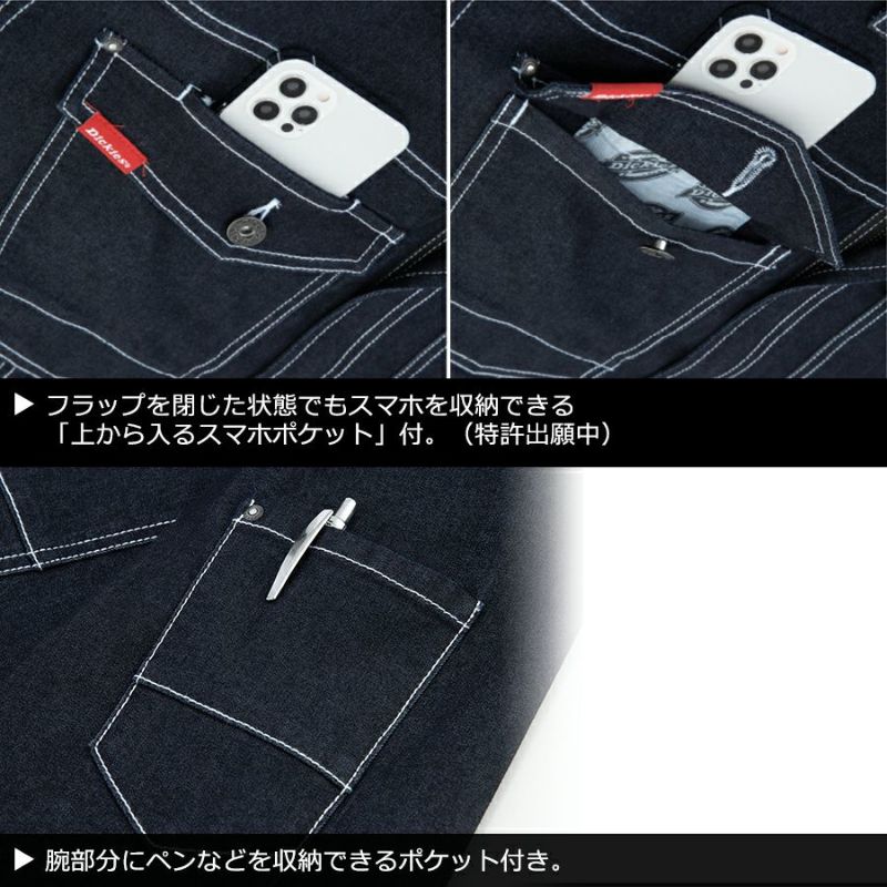 「Dickies(ディッキーズ)」ストレッチデニムツナギ/D-706/つなぎ 長袖 デニム 男女兼用