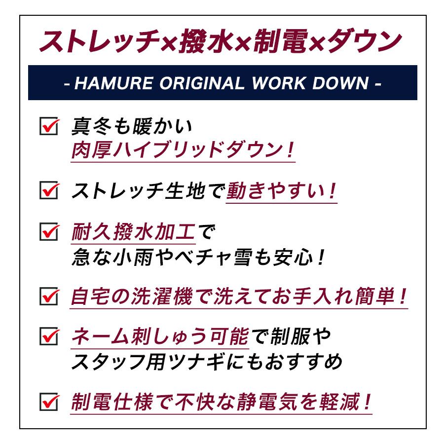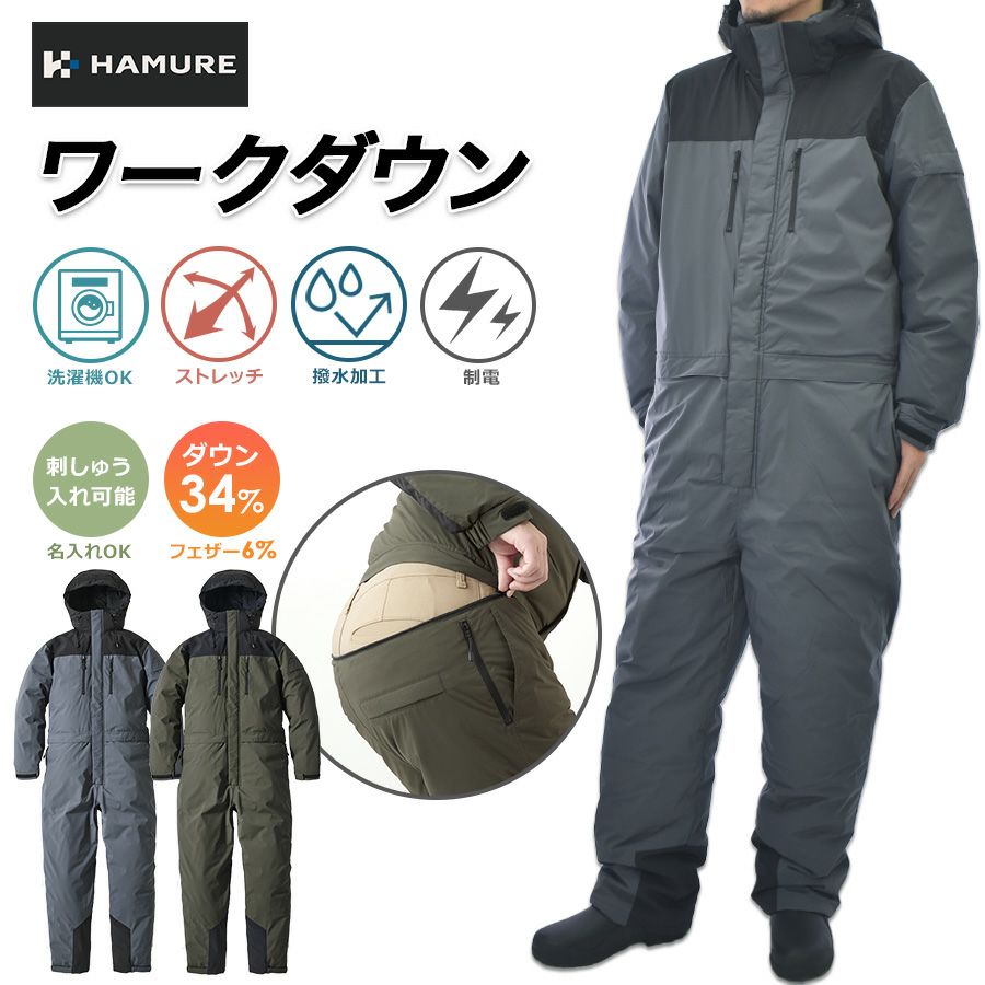 ハミューレ ワークダウンツナギ HMU-2546 防寒つなぎ ストレッチ ヒップオープン 腰割れ ハイブリッドダウン 洗える 洗濯 撥水 作業服 作業着 プロノ