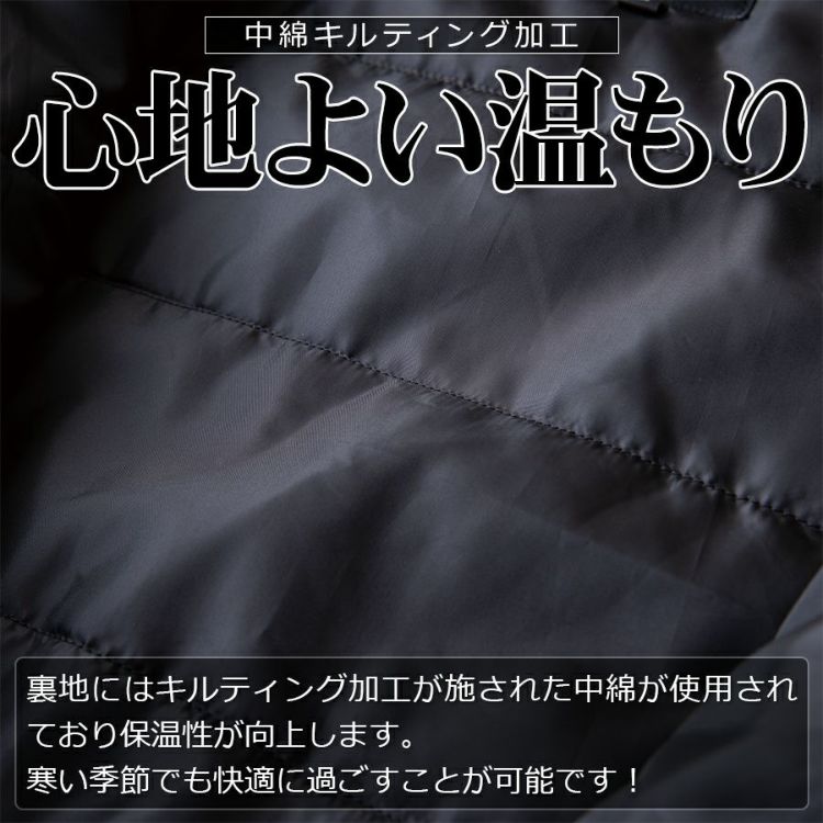裏地にはキルティング加工が施された中綿が使用されており保温性が向上します。