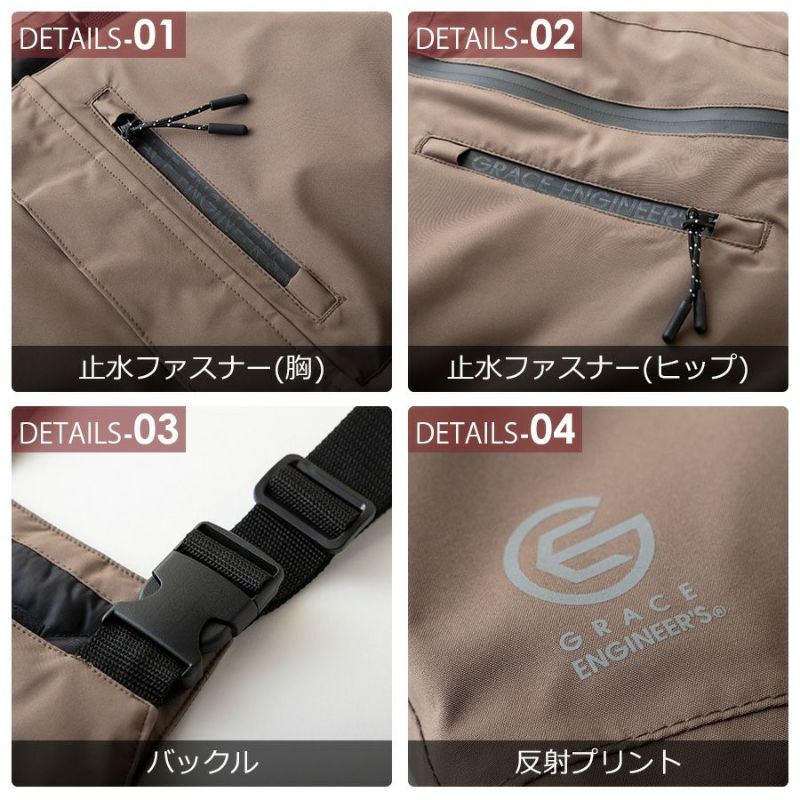グレイスエンジニアーズ 防風防水防寒サロペット GE-750 サロペット オーバーオール 冬 ヒップオープン 腰割れ おしゃれ 作業服 作業着 釣り アウトドア バイク プロノ