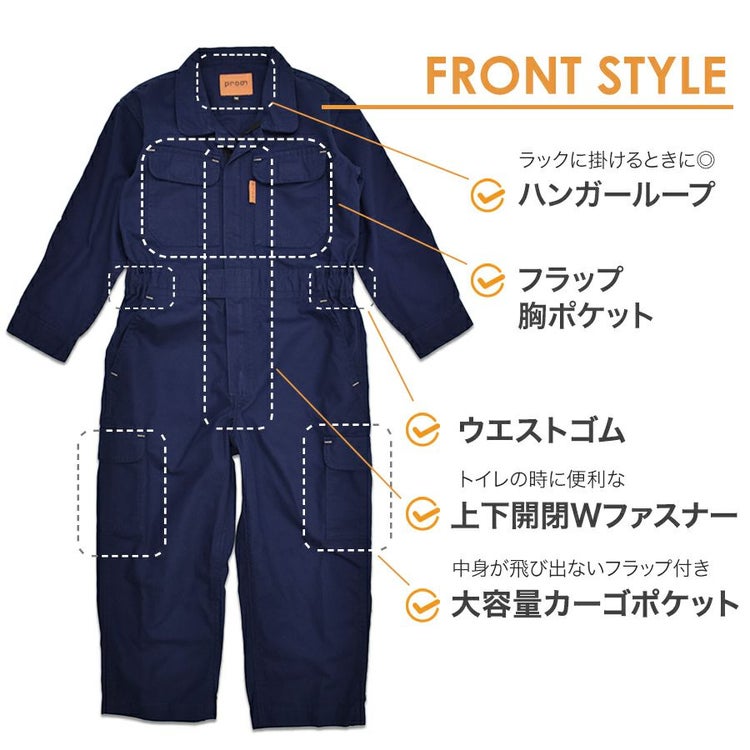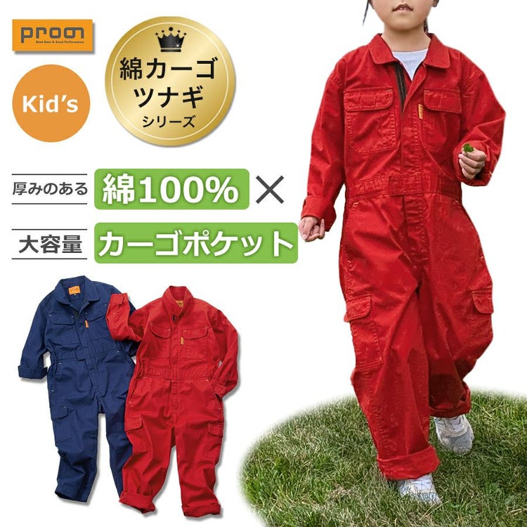 プロノ キッズ 綿カーゴつなぎ 116-420K KIDS 子供用 ジュニア オールインワン 作業服 作業着 農作業 親子コーデ 綿100