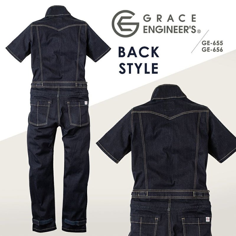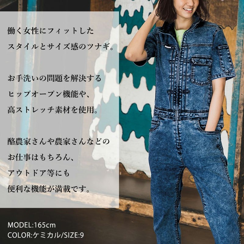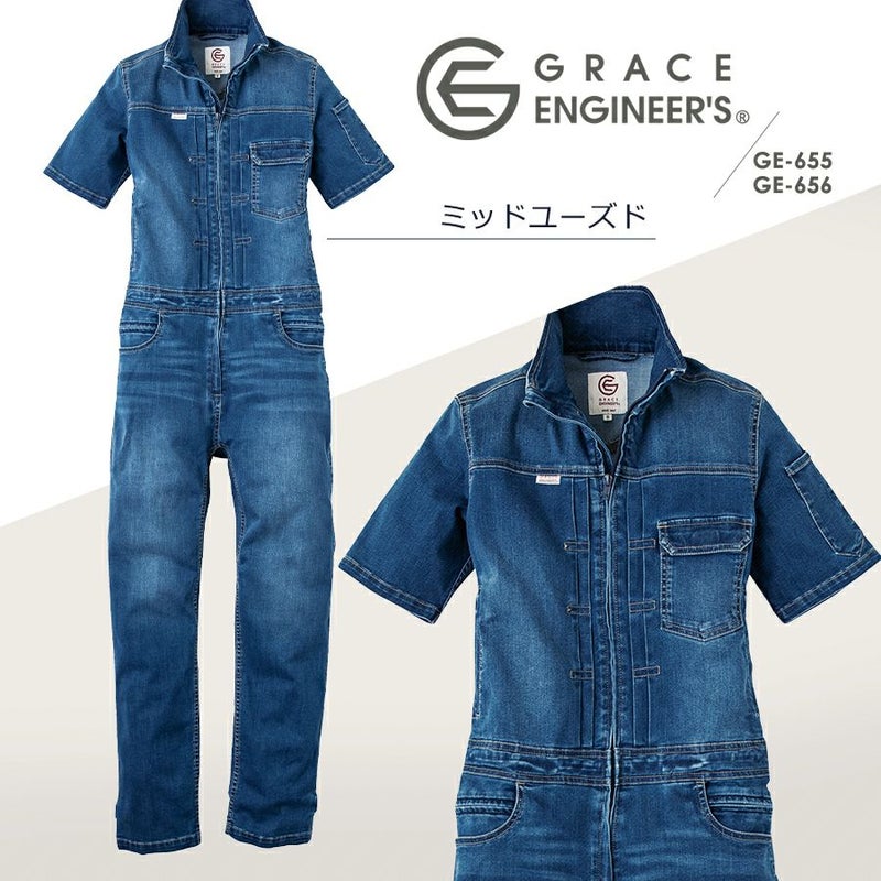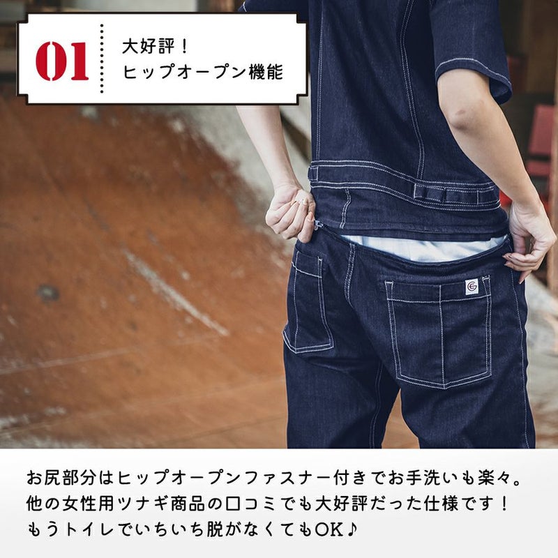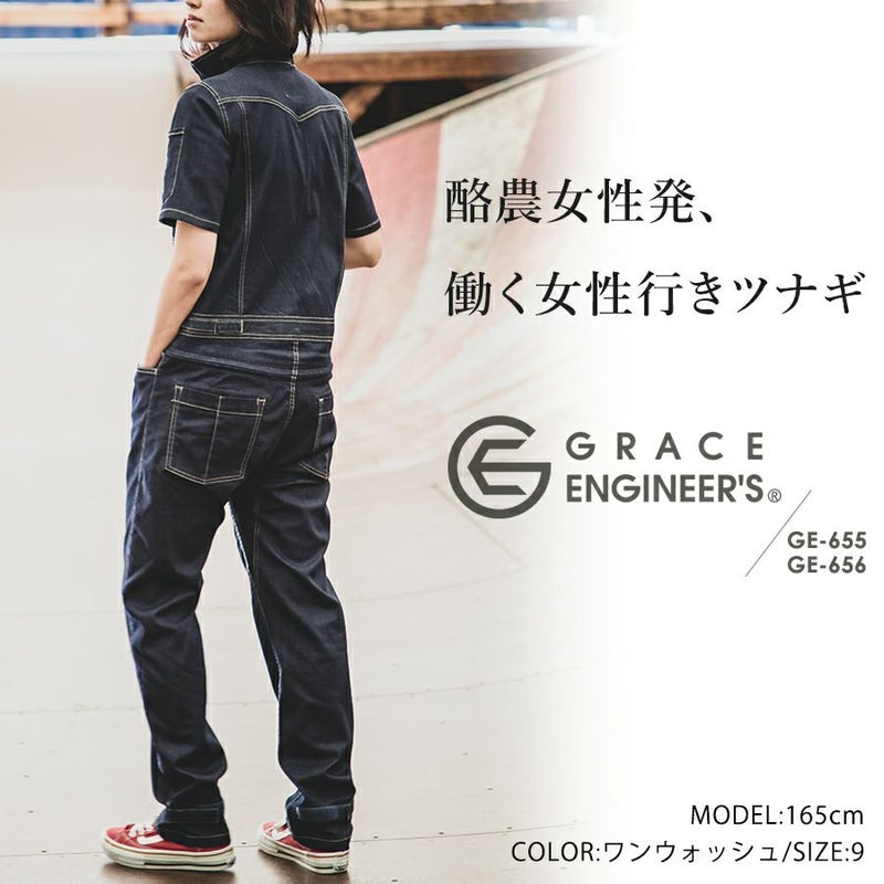 【半袖】「グレイスエンジニアーズ」デアリーウーマンツナギ/GE-655/GE-656 レディース 女性用 デニム ヒップオープン おしゃれ 酪農 作業服