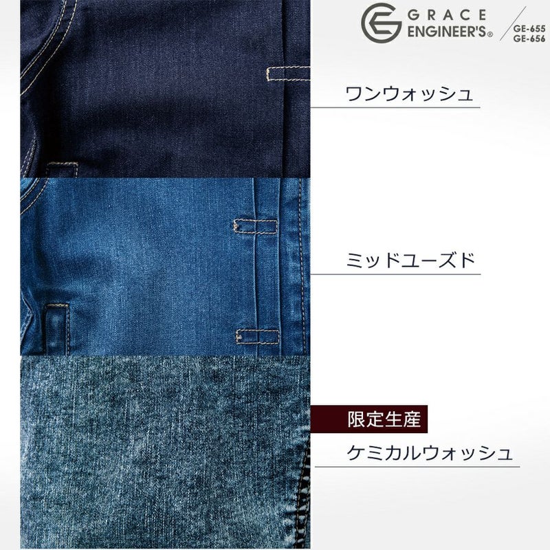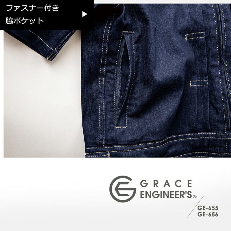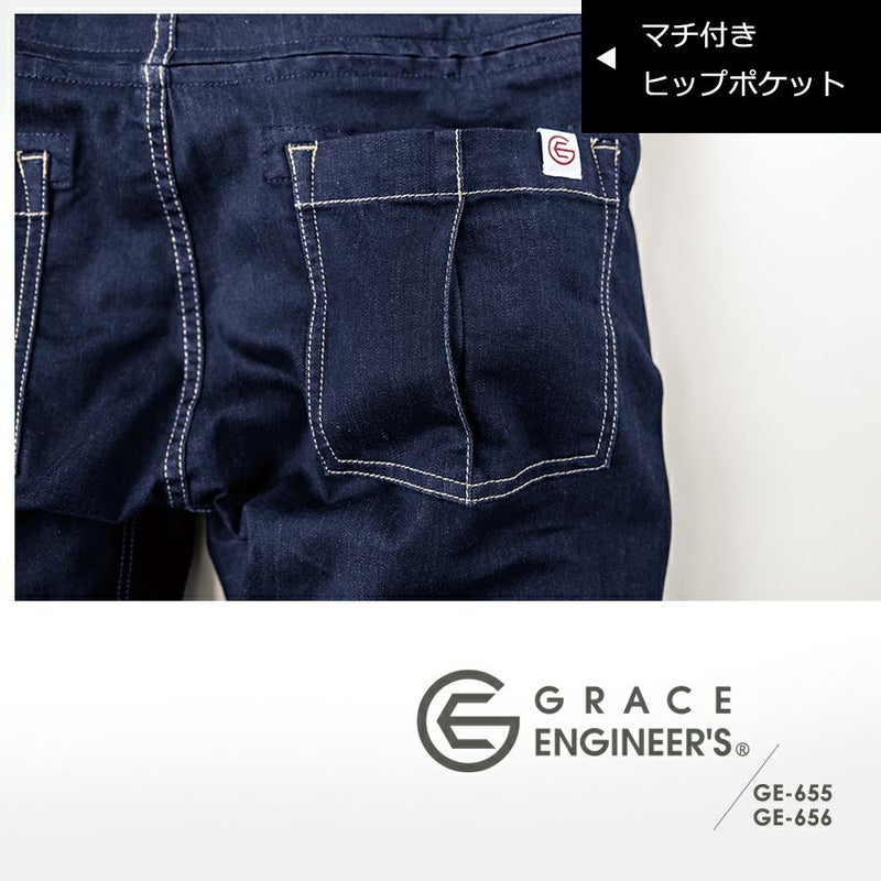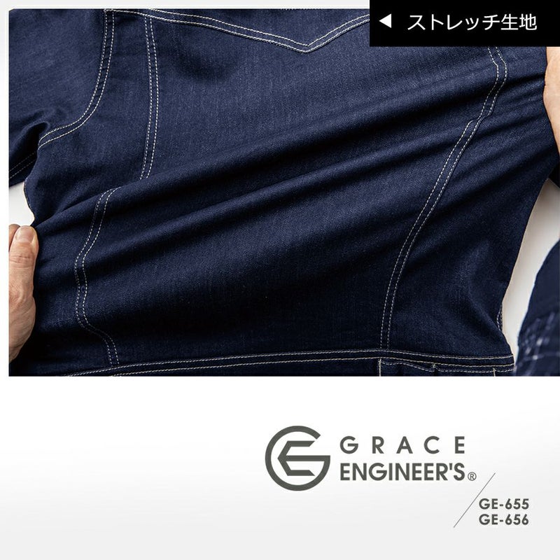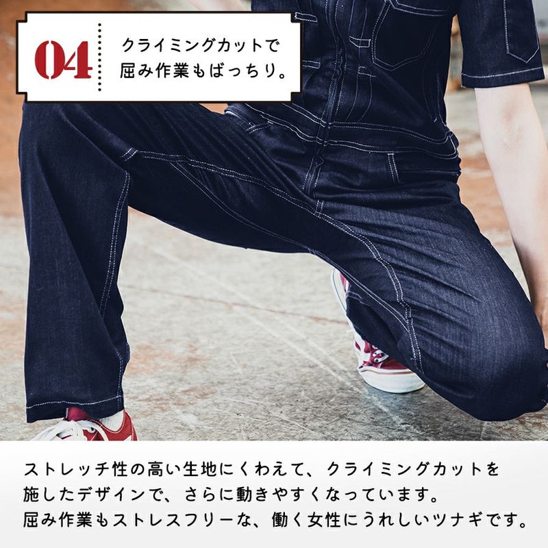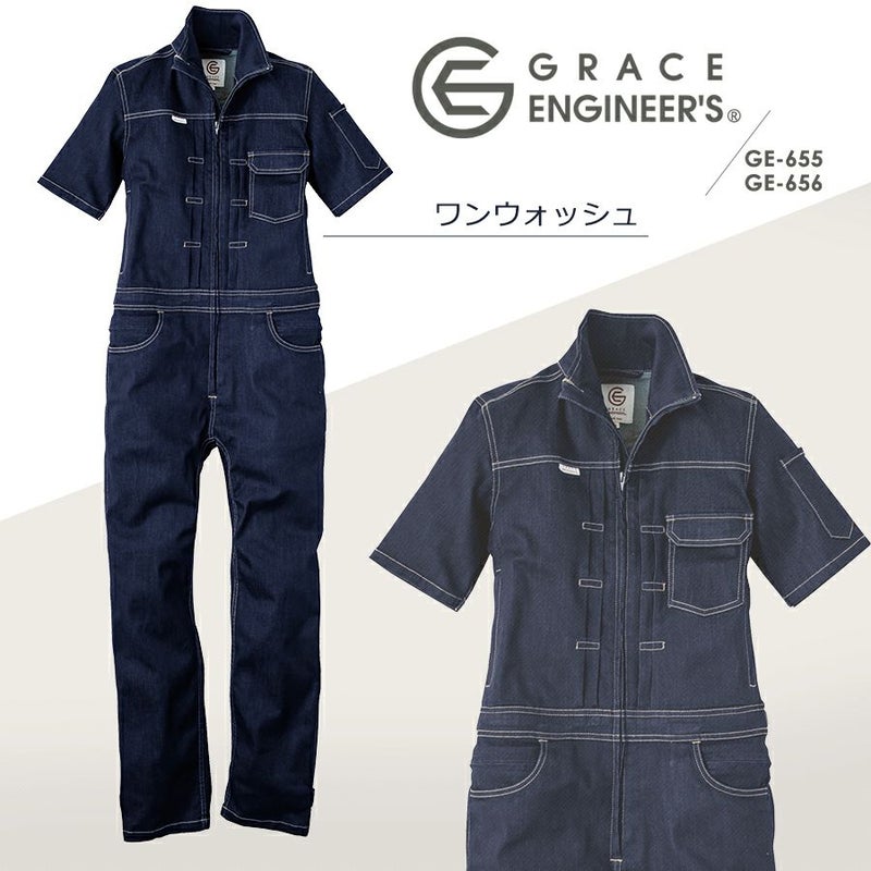 【半袖】「グレイスエンジニアーズ」デアリーウーマンツナギ/GE-655/GE-656 レディース 女性用 デニム ヒップオープン おしゃれ 酪農 作業服