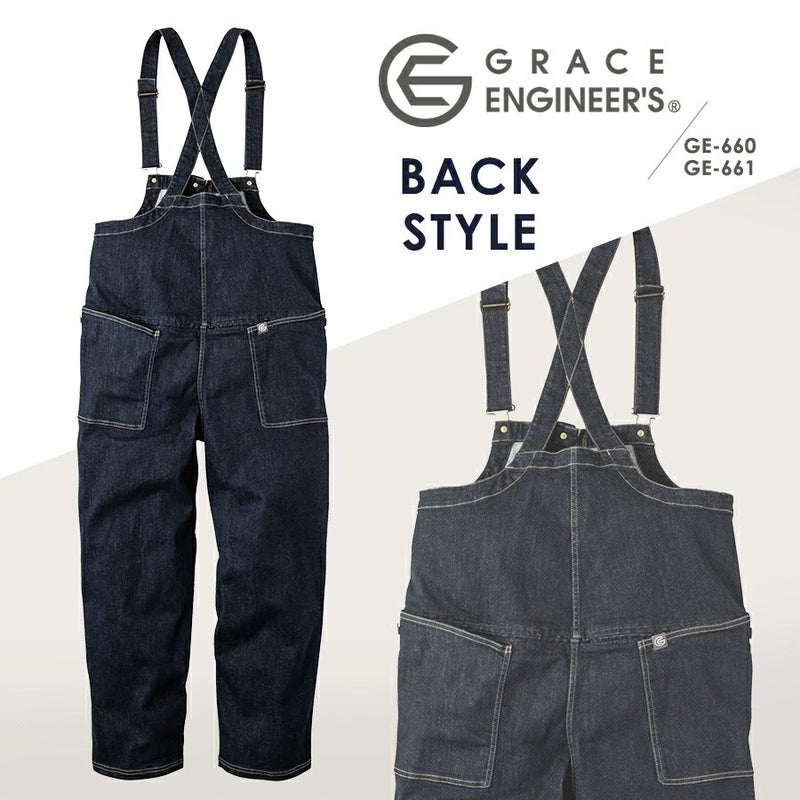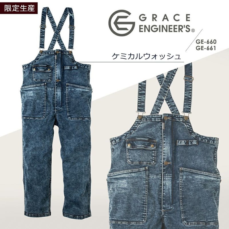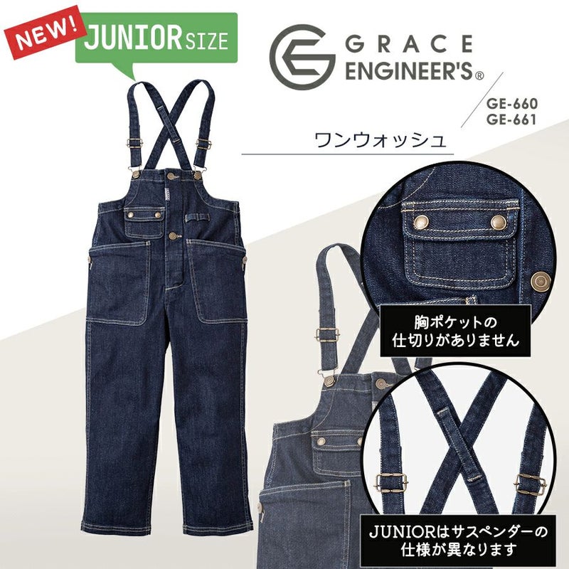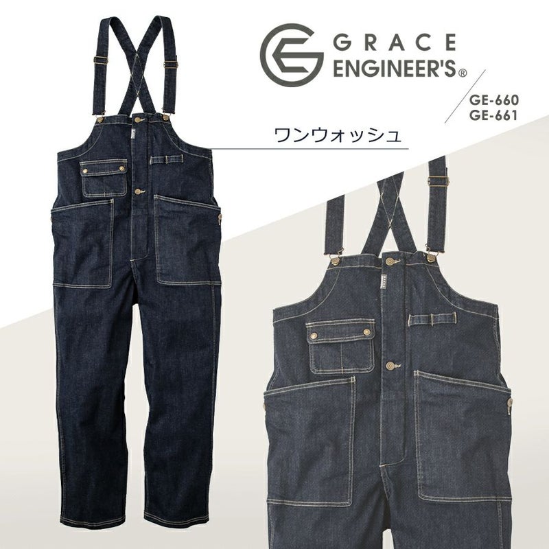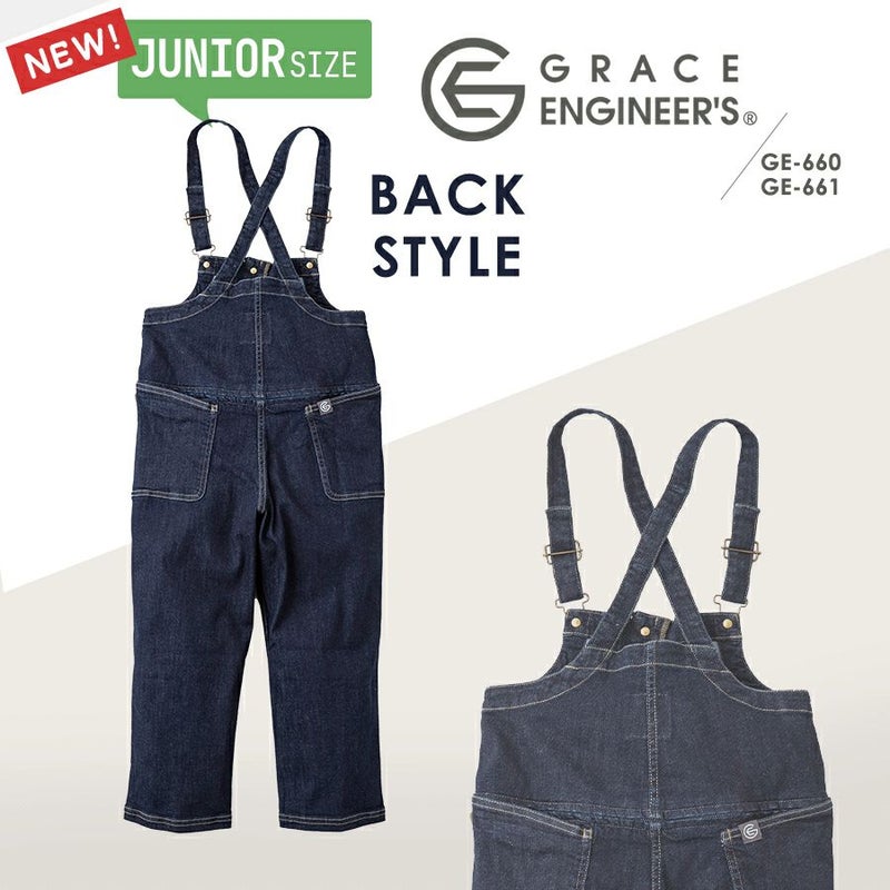 グレイスエンジニアーズ ボーダーレスデッキパンツ GE-660 GE-661 サロペット メンズ レディース ユニセックス ジュニア キッズ 子供 親子 ストレッチ オーバーオール デニム
