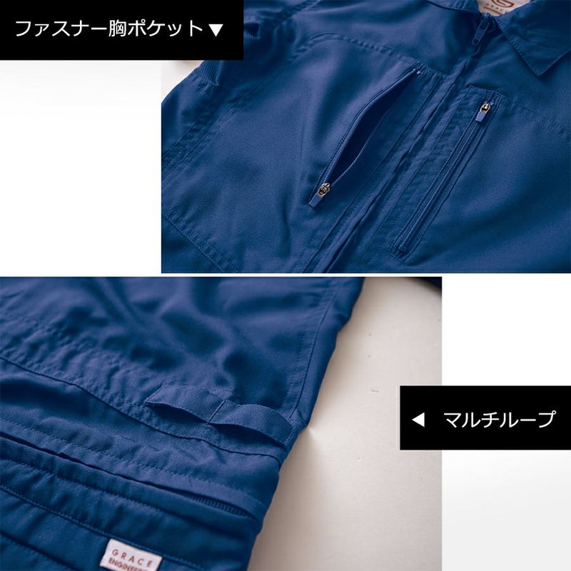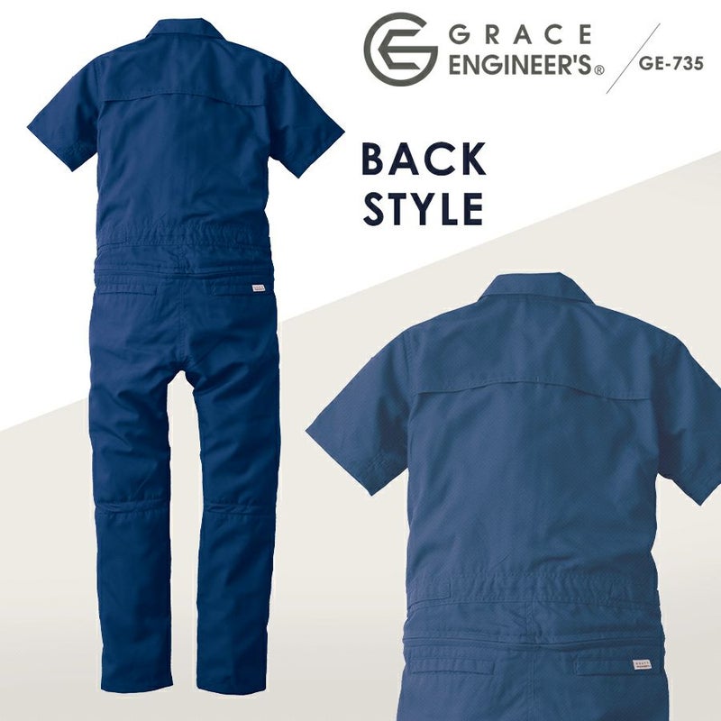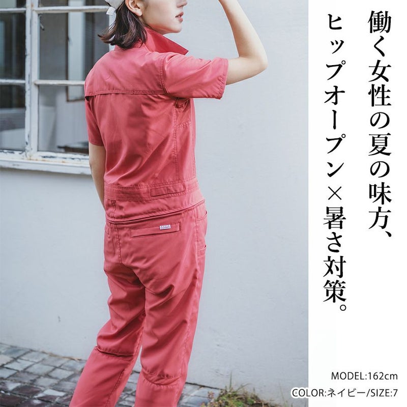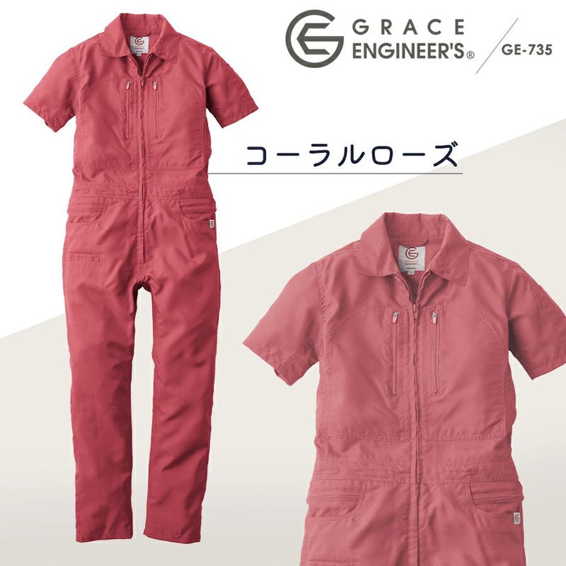 ゆったりサイズ グレイスエンジニアーズ クールフェミニンツナギ GE-735 レディース 女性用 半袖 夏 涼しい ヒップオープン おしゃれ 酪農 作業服