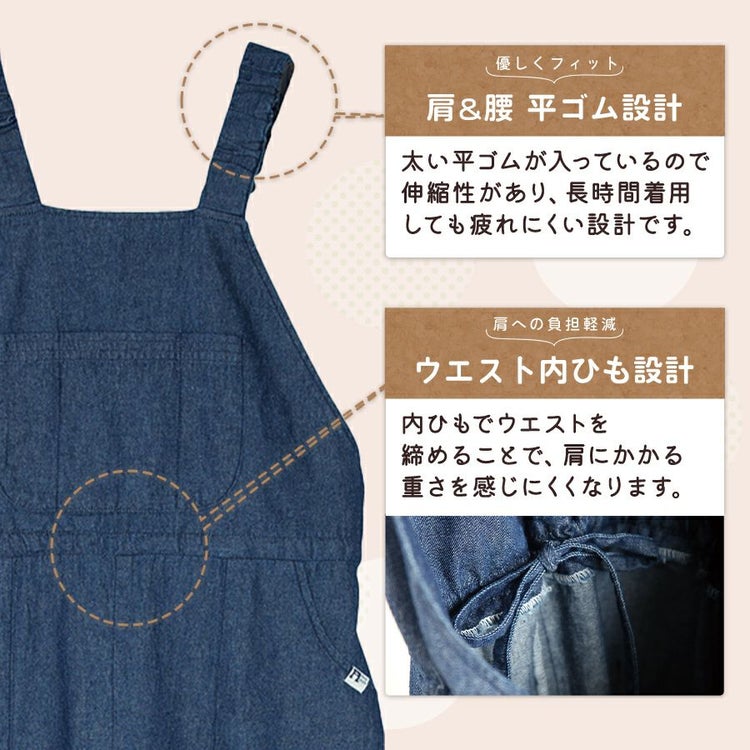◇肩ひも&腰(ウエスト後側)には優しくフィットし疲れにくい太い平ゴムを使用