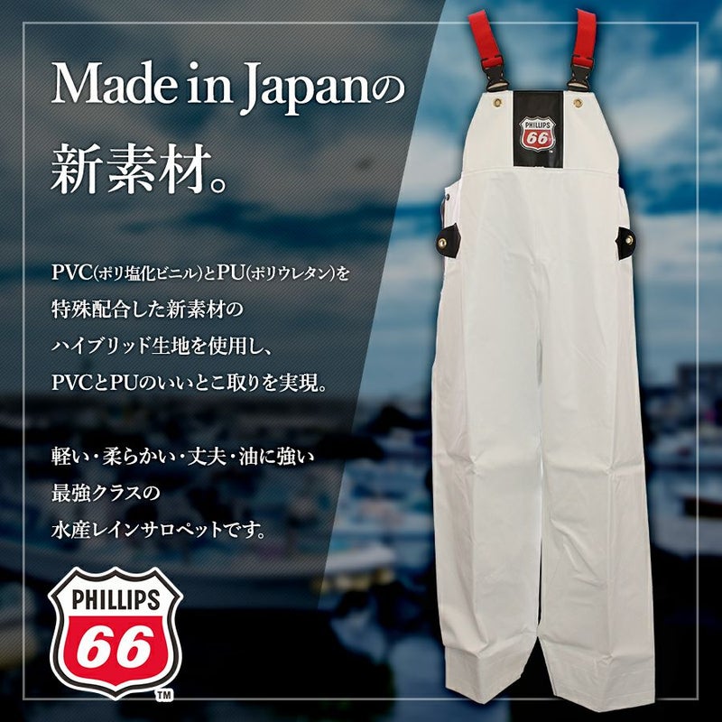 【5L】「PHILLIPS66 (フィリップスロクロク)」ハイブリッド水産レインサロペット/PH66-1704/水産合羽 完全防水 軽量 やわらかい 油に強い 魚油に強い 国産 ウェルダー 漁師 釣り