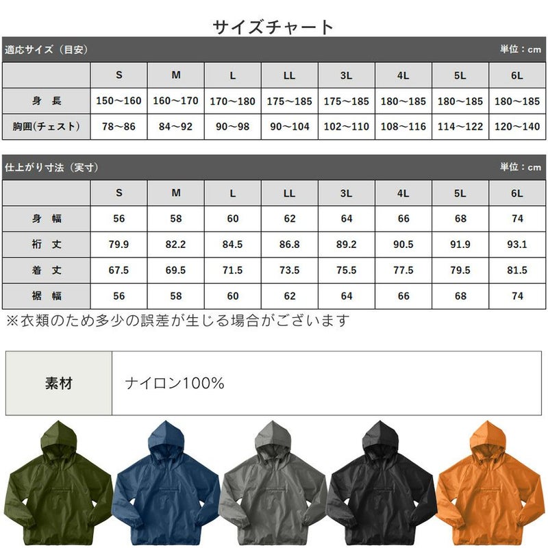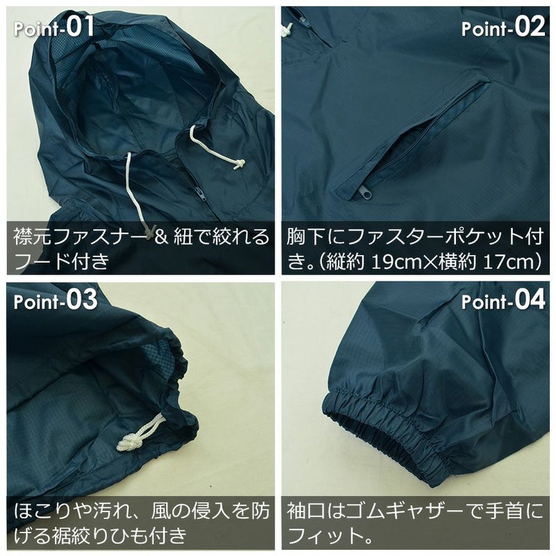 アノラック 風よけ 汚れよけ ヤッケ ウィンドブレーカー 防風 庭 農作業 建設業 工事 内装 アウトドア プロノ