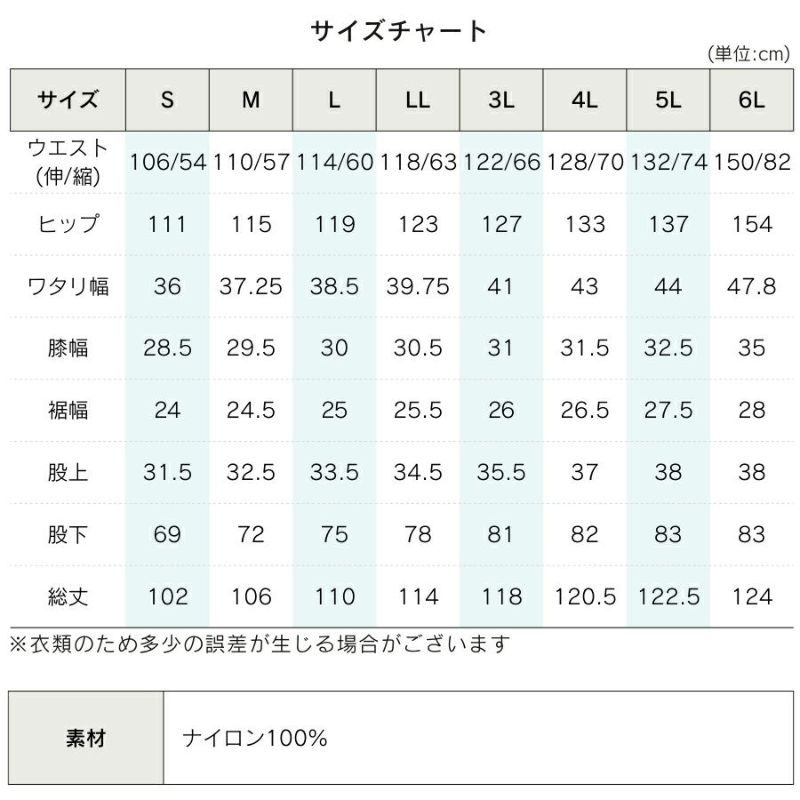 破れに強いリップストップ生地・軽量かつ丈夫なナイロン素材・防風・トイレに便利な前開きファスナー付き・ストレート裾