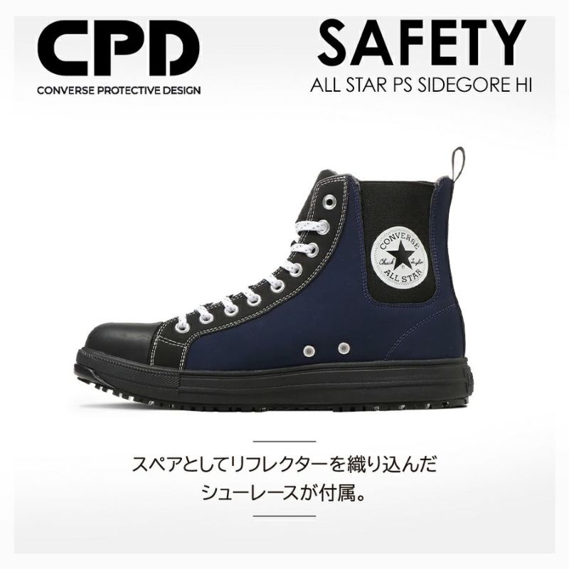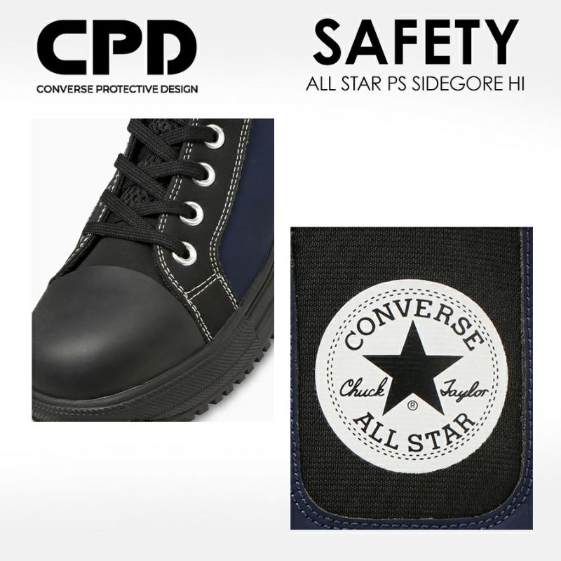 「コンバース CPD」ALL STAR PS SIDEGORE HI ネイビー セーフティシューズ サイドゴア オールスター ハイカット CONVERSE 安全靴 作業靴 プロテクティブスニーカー JSAA 先芯