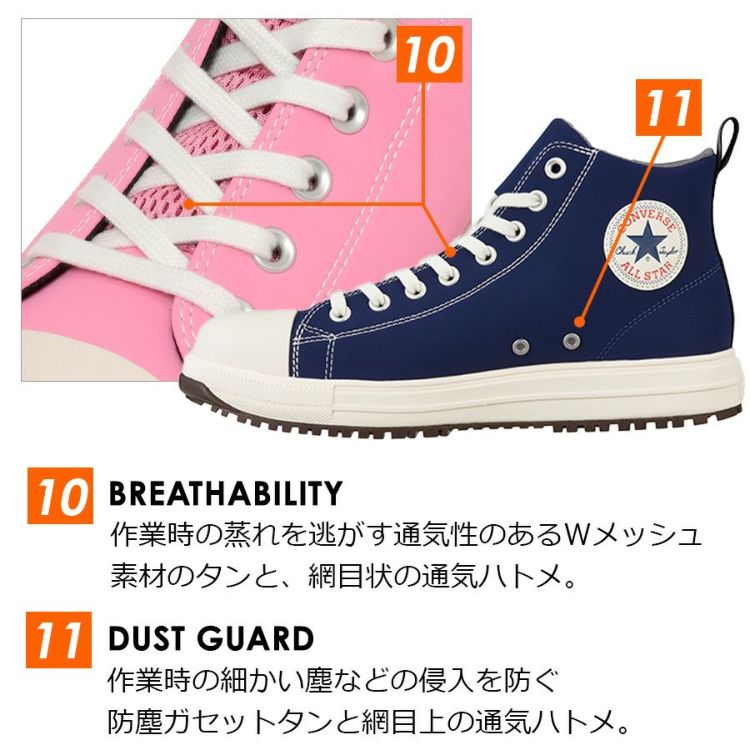 CONVERSE コンバース 安全靴 作業靴 作業 オールスター ハイカット ヒモ 紐 ALL STAR プロテクティブスニーカーライン CPD JSAA規格 A種 人工皮革製 プロスニーカー セーフティーシューズ 靴 シューズ 安全靴 先芯入り 先芯 リフレクター