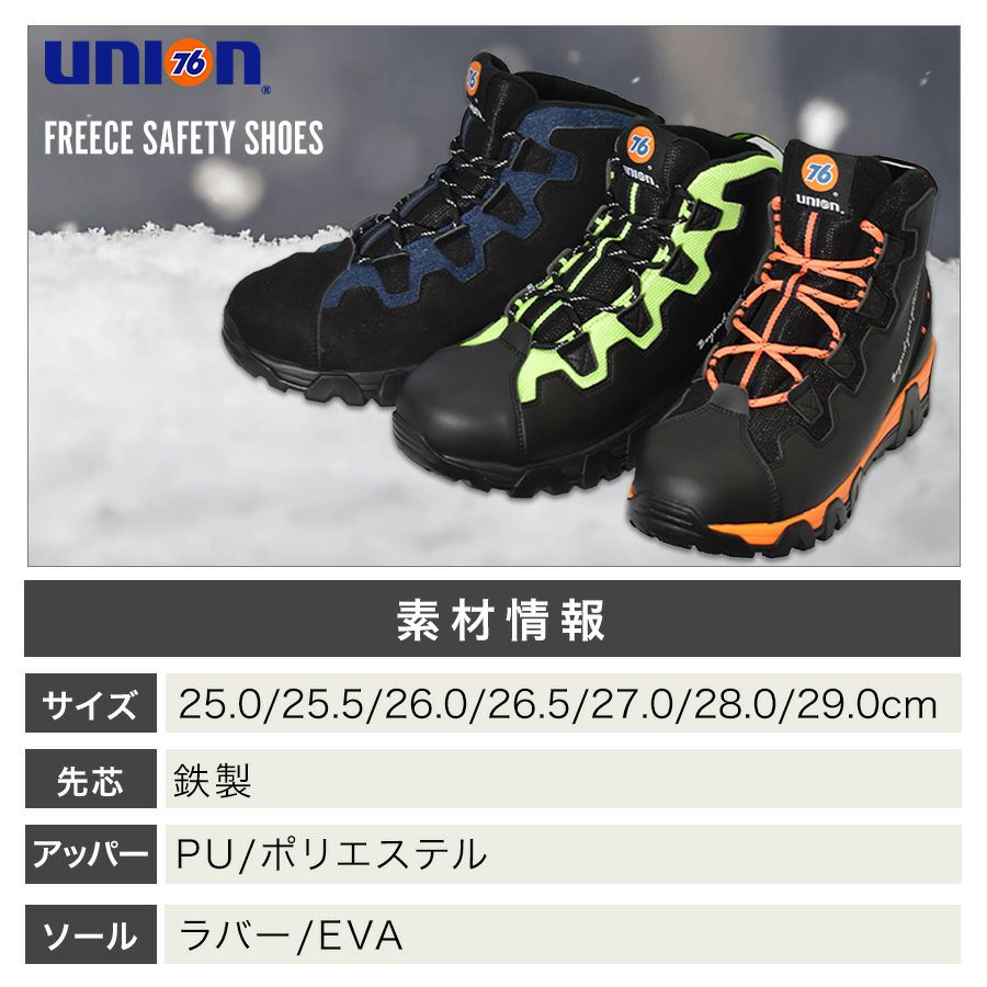 UNION76 ナナロク 防寒 フリースセーフティシューズ No.76-1719 安全靴 作業靴 プロノ スノトレ 冬用靴 寒さ対策 耐油