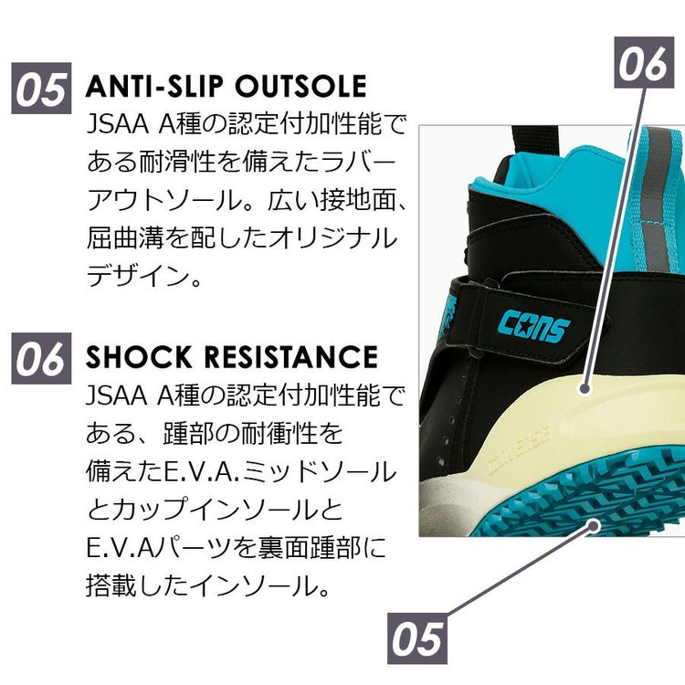 【25秋冬新作】コンバース CPD AEROJAM PS エアロジャム PS ブラック/ティール 25AW 安全靴 作業靴 ハイカット セーフティシューズ バイク CONVERSE