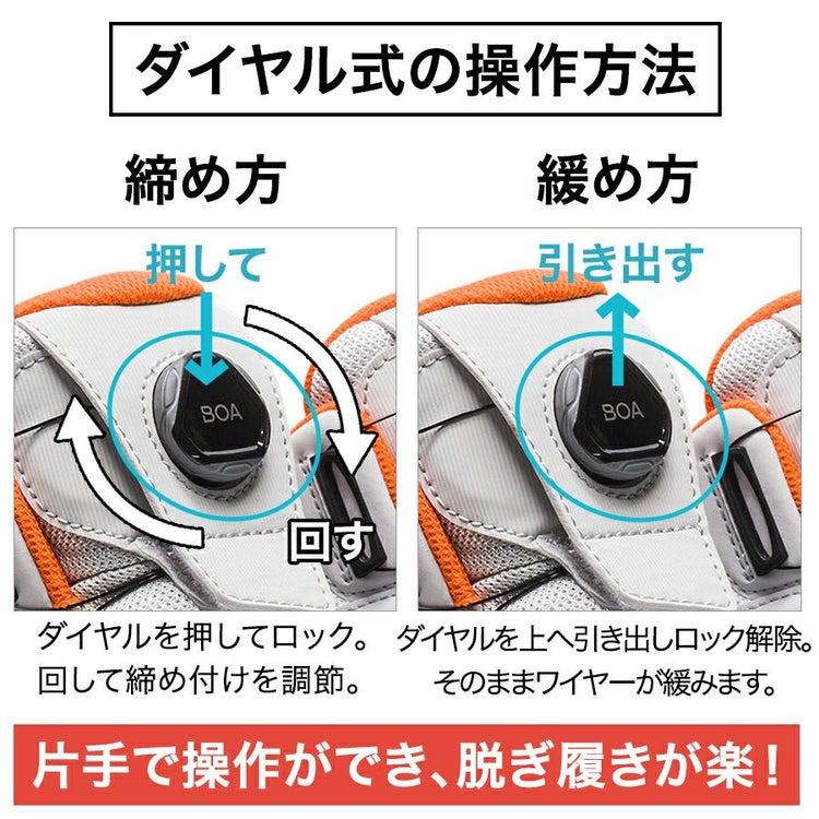 BOAフィットシステムを採用し、すばやく、細やかなフィット調節が可能となりました。
