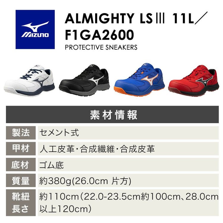 ミズノ オールマイティ LS III 11L ALMIGHTY F1GA260001 F1GA260009 F1GA260027 F1GA260062 JSAA A種 安全靴 作業靴 プロテクティブスニーカー MIZUNO