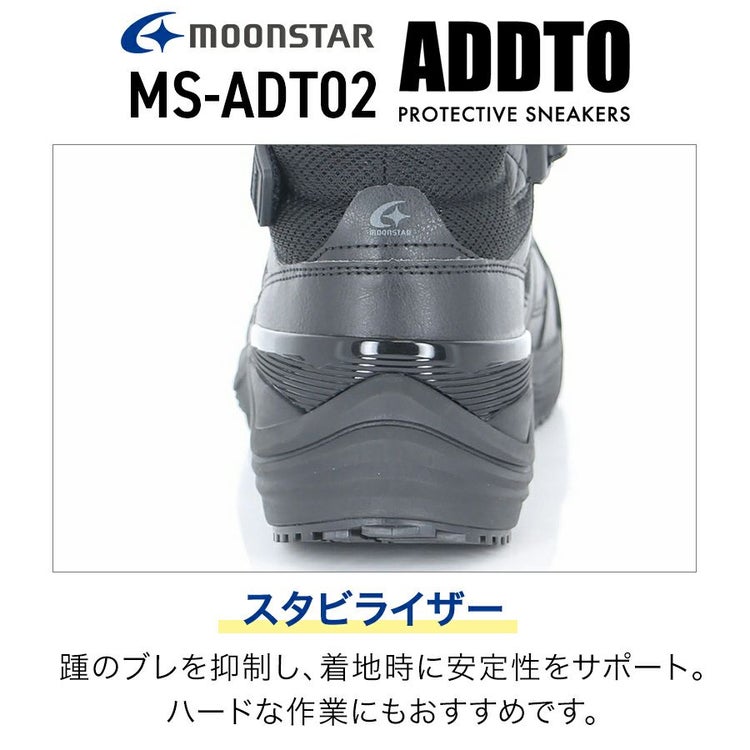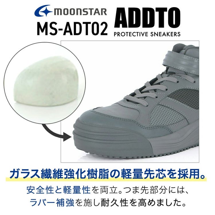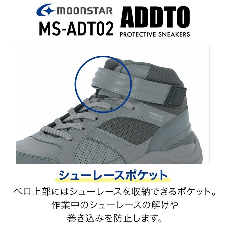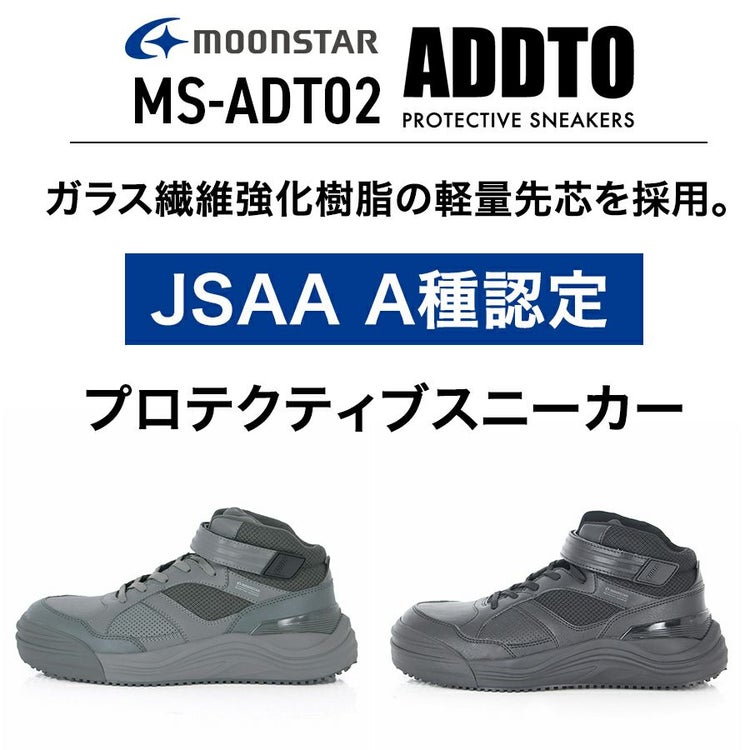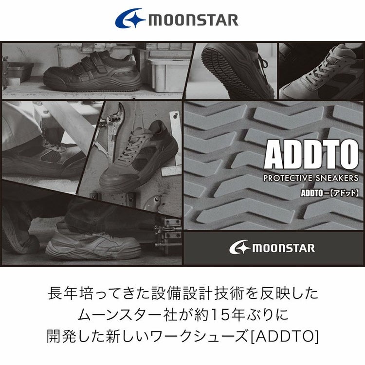 ムーンスター MOONSTAR アドット ADDTO セーフティ セーフティシューズ プロスニーカー プロテクティブスニーカー 耐油 防滑性 JSAA A種 レースアップ スニーカー シューズ ミッドカット ミッドカットスニーカー 靴 安全靴 先芯入り 先芯 スタビライザー