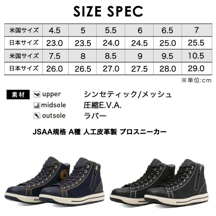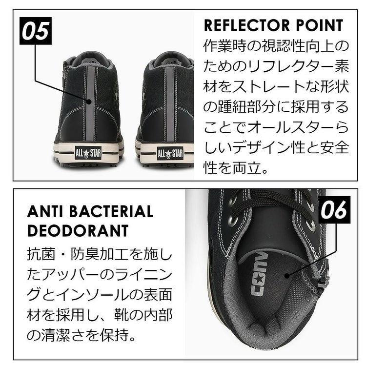 CONVERSE コンバース 安全靴 作業靴 作業 オールスター ハイカット ヒモ 紐 ALL STAR プロテクティブスニーカーライン JSAA規格 A種 人工皮革製 プロスニーカー セーフティーシューズ 靴 シューズ 安全靴 先芯入り 先芯 リフレクター CONVERSE WORKING コンバース ワーキング
