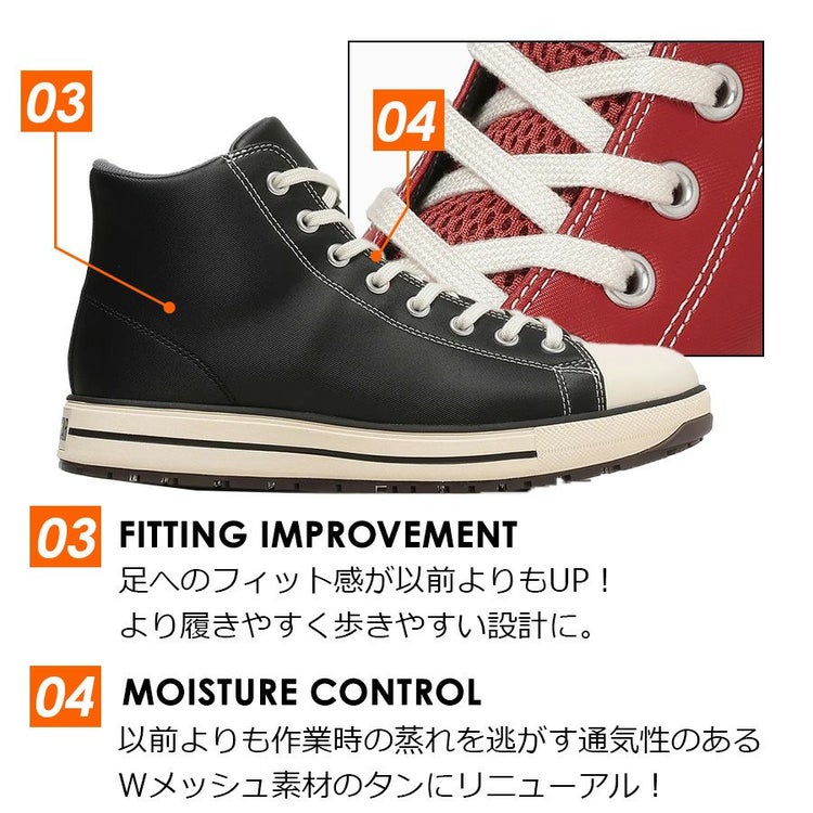 安全性や耐久性とコンバースならではのデザイン性を兼ね備えたプロテクティブスニーカー、ハイカットモデルが お客様のお声を受けてさらに使いやすく、履きやすいデザインに今季からリニューアルしました!