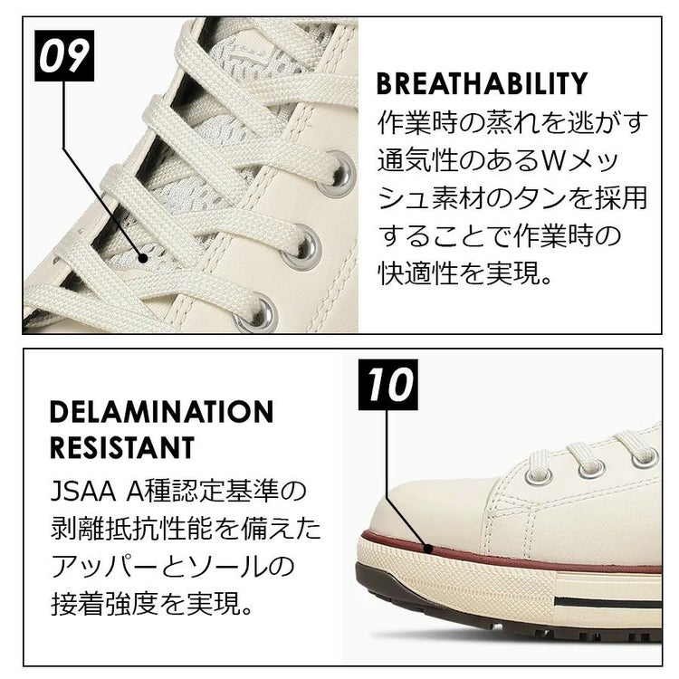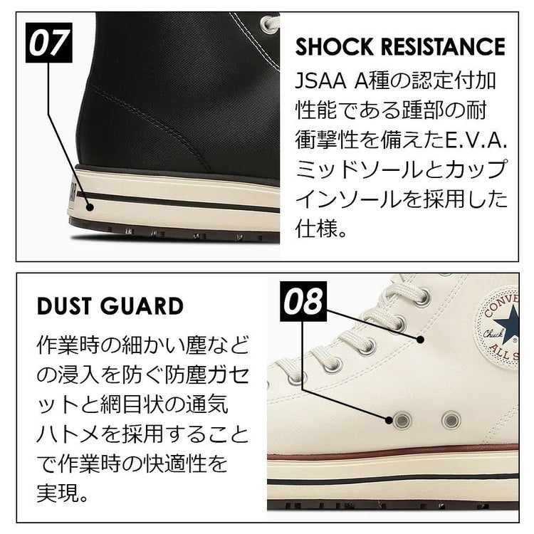 CONVERSE コンバース 安全靴 作業靴 作業 オールスター ハイカット ヒモ 紐 ALL STAR プロテクティブスニーカーライン JSAA規格 A種 人工皮革製 プロスニーカー セーフティーシューズ 靴 シューズ 安全靴 先芯入り 先芯 リフレクター CONVERSE WORKING コンバース ワーキング
