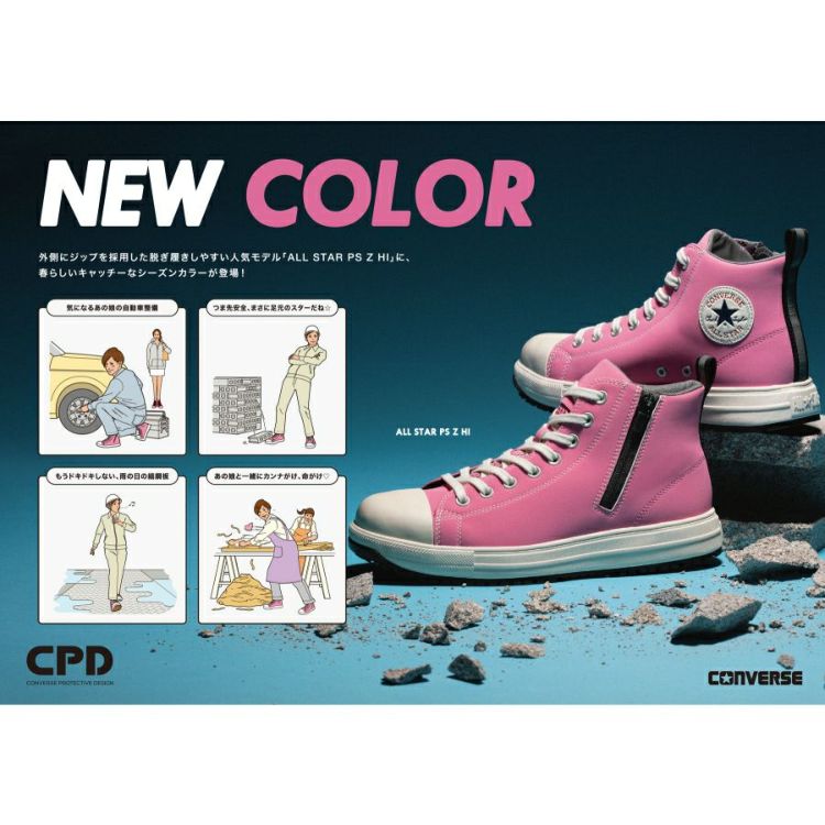 【2025春夏新作】コンバース CPD ALL STAR PS Z HI オールスター 安全靴 作業靴 ハイカット サイドジップ セーフティシューズ バイク CONVERSE