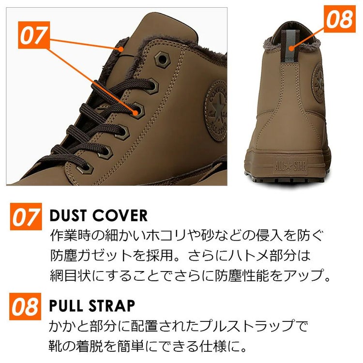 CONVERSE コンバース 2025AW 安全靴 作業靴 作業 ハイカット ヒモ 紐 ONE STAR プロテクティブスニーカーライン CPD JSAA規格 A種 人工皮革製 プロスニーカー セーフティーシューズ 靴 シューズ 安全靴 先芯入り 先芯 リフレクター 撥水 防寒 ボア 防塵 耐滑
