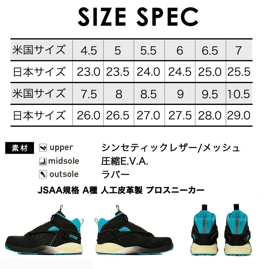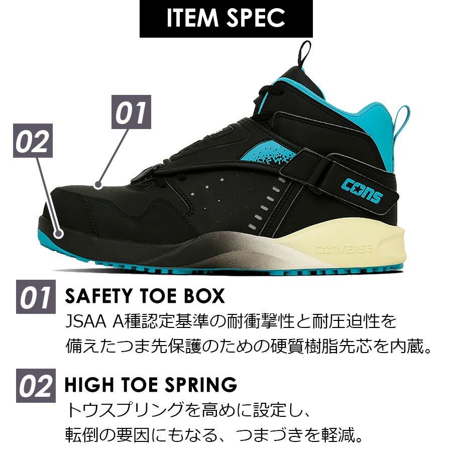 他の画像を見る 【25秋冬新作】コンバース CPD AEROJAM PS エアロジャム PS ブラック/ティール 25AW 安全靴 作業靴 ハイカット セーフティシューズ バイク CONVERSE ¥ 18,700 税込 カートに入れる お気に入りに登録する