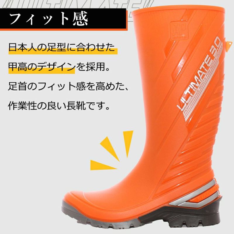 AP-ULTI インジェクション長靴 耐油 総耐油 対候性 耐薬品性 フィット 甲高 日本人の足型に合わせた仕様 足首の負担が少ない