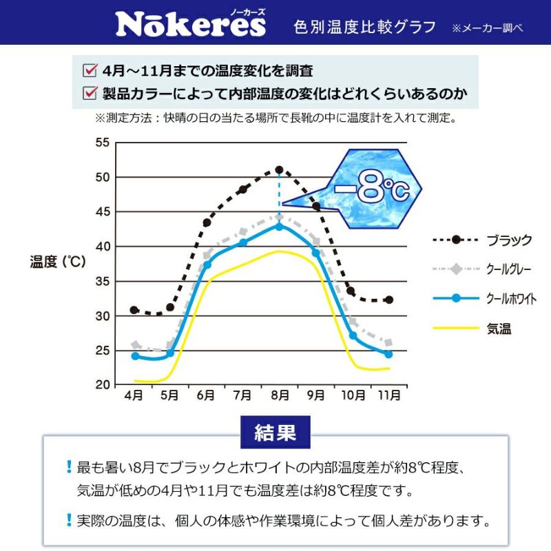 濃色製品と比べ長靴内部の温度差が約8℃低く、高温になりにくい長靴です。