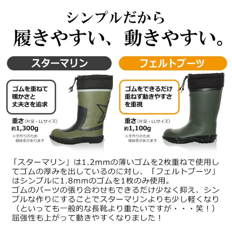 ライナーに極厚6mmフェルト素材を使用した防寒長靴「フェルトブーツ」が登場!
