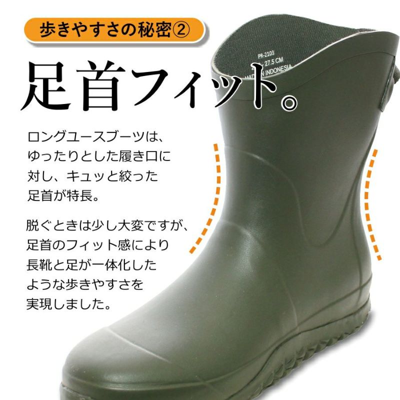 「プロノ」ロングユースレインブーツ ハーフ丈