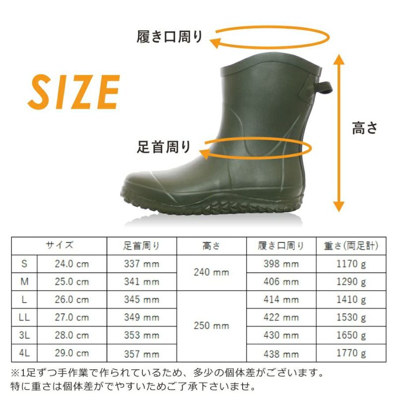 長靴 レインブーツ 農業 酪農 畑作 ガーデニング 通勤 通学 アウトドア キャンプ フェス 雨 ショート長靴 ショート丈 短い長靴