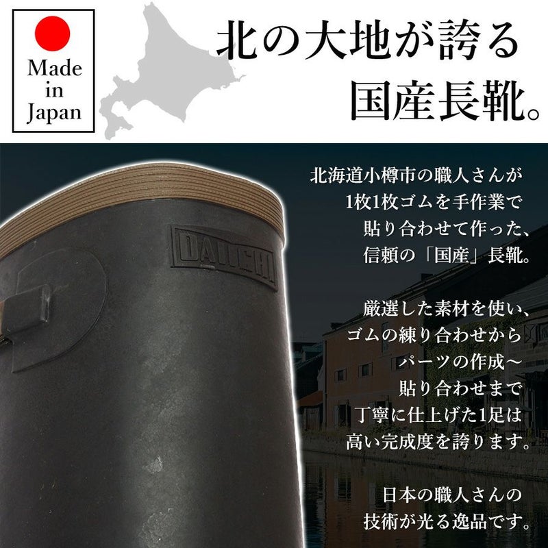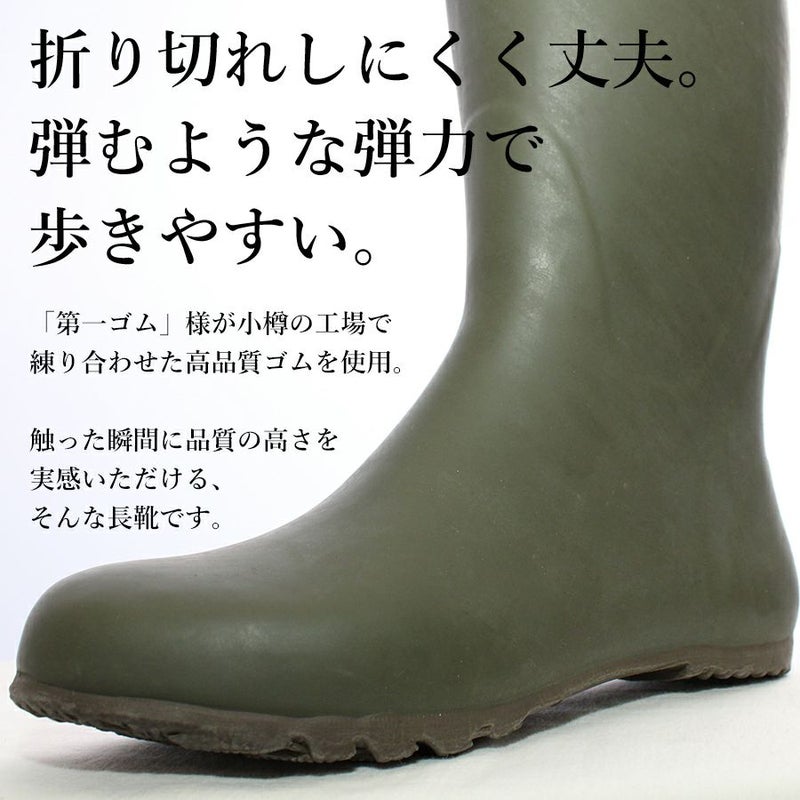 北海道小樽市の工場で職人の手により1足ずつ丁寧に作り上げられた希少な国産長靴。