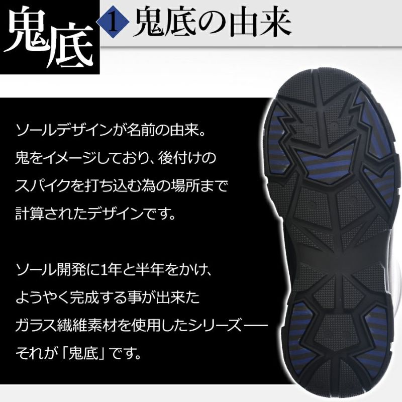 オリジナルのガラス繊維配合ソール「鬼底」を採用。