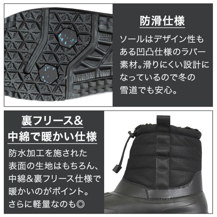 中綿+裏フリースを採用しているので、寒さから足元を守ってくれます。