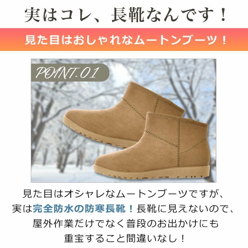 ・一見オシャレなムートンブーツですが、実は完全防水の防寒長靴!