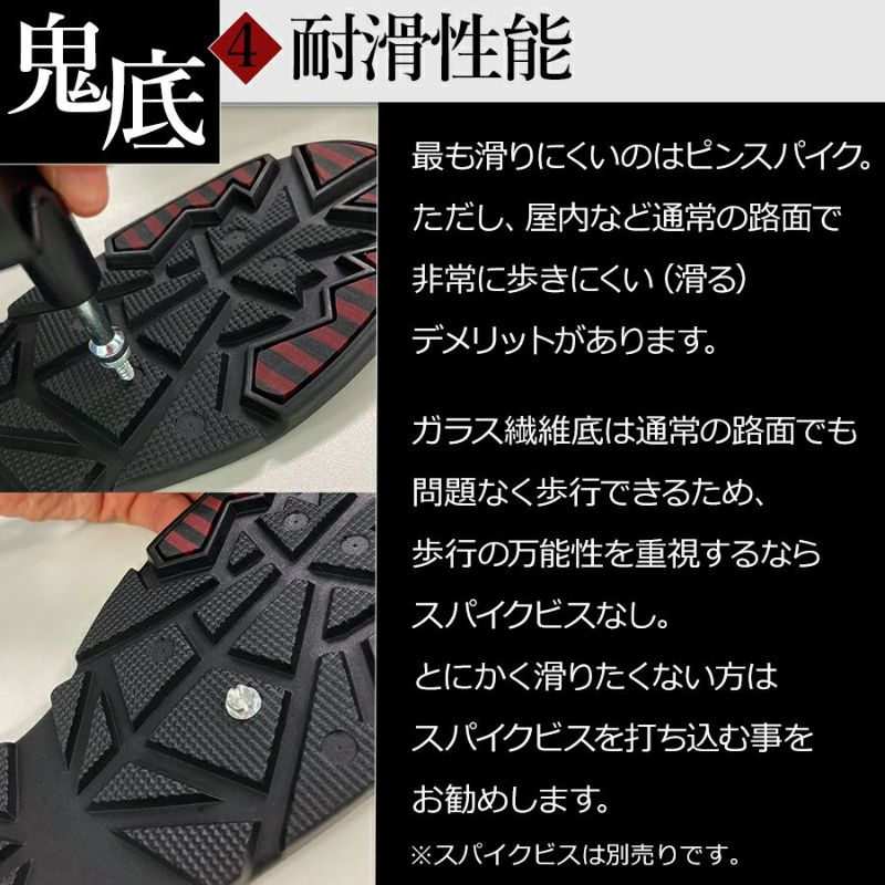 オリジナルのガラス繊維ソール「鬼底」で滑りにくい!