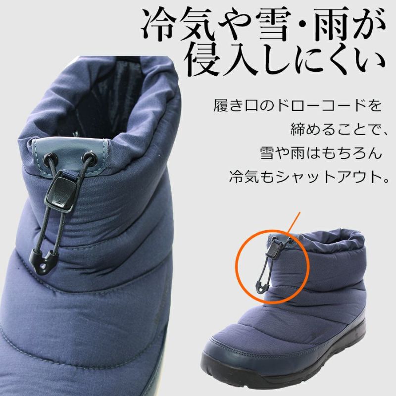 履き口のドローコードを締めることで、冷気や雪・雨などが侵入しにくいブーティです。