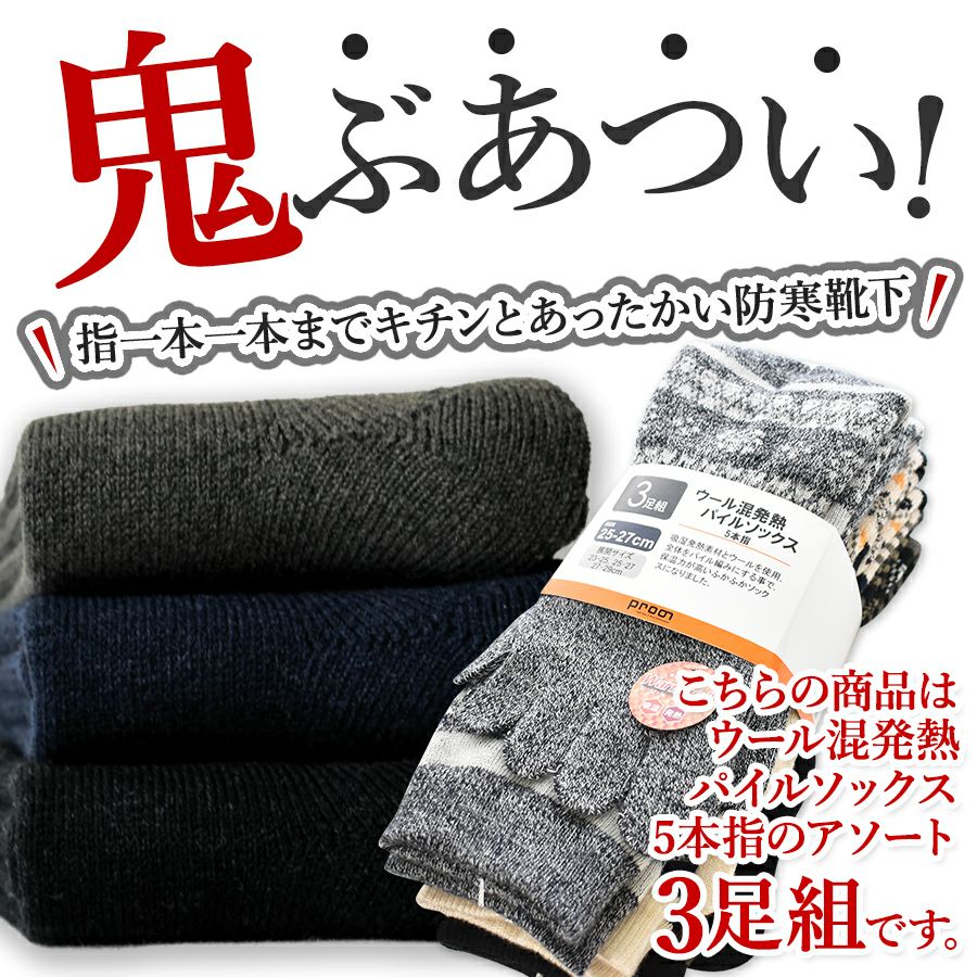 他の画像を見る プロノ ウール混発熱パイルソックス 5本指 3足組 PR-2342-3P メンズ レディース 靴下 冬物 防寒 厚手 あったかい 北海道 Prono ¥ 1,098 税込 在庫切れ カートに入れる お気に入りに登録する