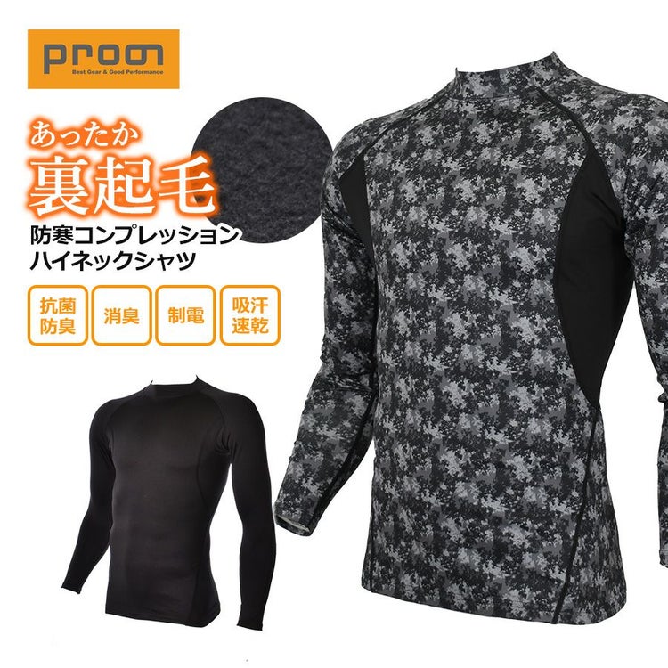 プロノ 防寒コンプレッションハイネックシャツ PR-2336 裏起毛 インナー 長袖 作業服 作業着 秋冬 スポーツ Prono