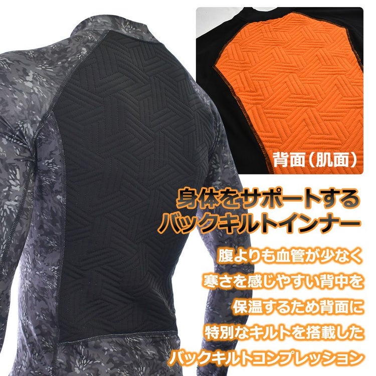 寒さを感じやすい背中に、断熱素材を使用したキルトを施した画期的なコンプレッションです。