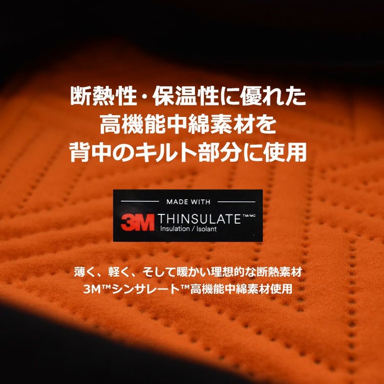 ★背中のキルト部分には3Mの高機能中綿「シンサレート」(薄くて軽くて暖かい中綿)を使用