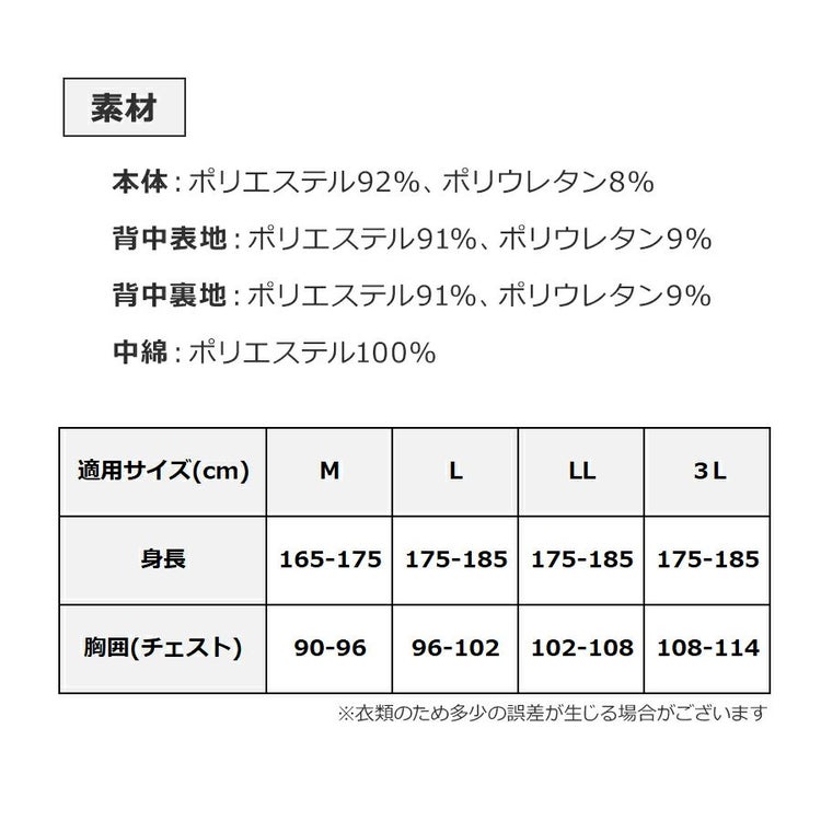 背中裏地:ポリエステル92%、ポリウレタン8%