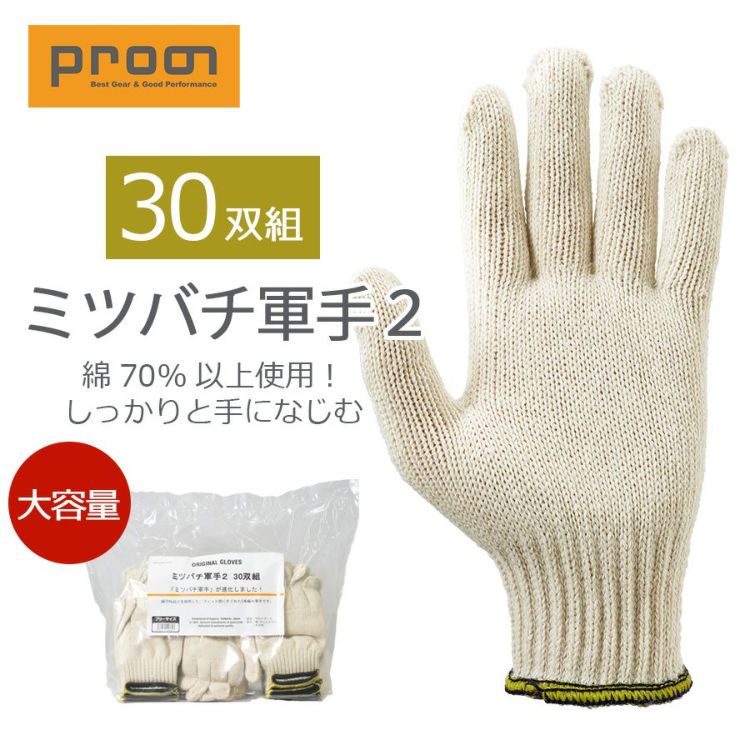 プロノ ミツバチ軍手2 30双組 PR-2529-3-set 軍手 フリーサイズ 作業用 手袋 Prono