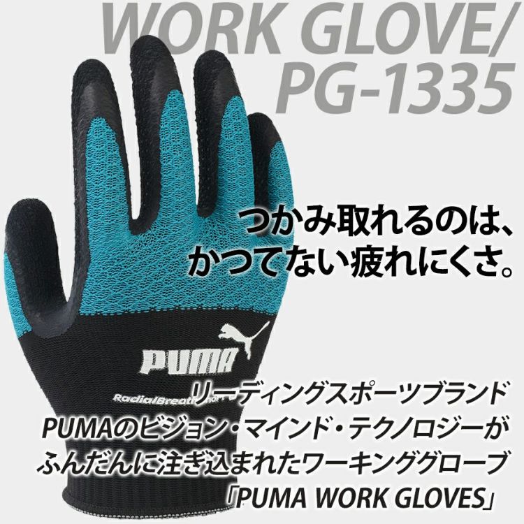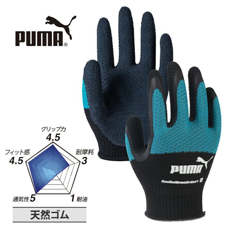 プーマ ワーク グローブ ラジアルブレス ショート PG-1335 作業用 手袋 ゴム引き 背抜き すべり止め グリップ フィット PUMA