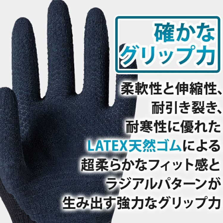 ★柔軟性と伸縮性、耐引き裂き、耐寒性に優れたLATEX天然ゴムによる超柔らかなフィット感とラジアルパターンが生み出す強力なグリップ力。