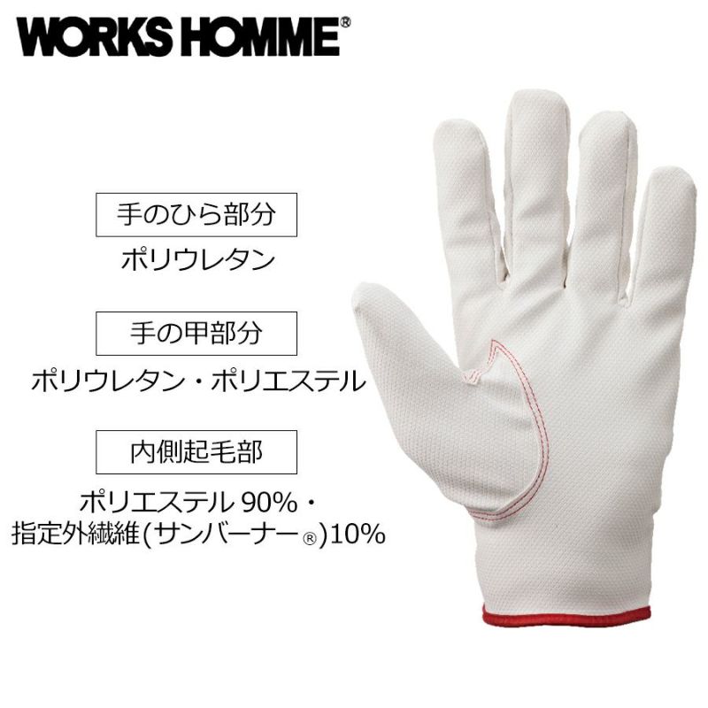WORKS HOMME 発熱防寒PUグローブ SB201-WH SB201-BK 手袋 裏フリース 作業 ユニワールド プロノ